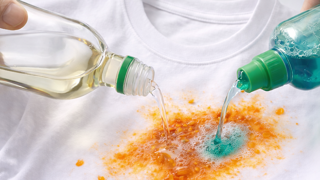 일반 세탁세제로는 기름기만 일부 제거되거나, 색소만 옅어질 뿐 얼룩이 남기 쉽다. 특히 시간이 지나 섬유에 스며들면 난이도는 더 높아진다.