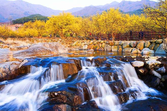 이곳에는 총 5개 코스, 12.4km로 구성된 ‘산수유 길’이 이어져 있습니다. 그중 1코스는 서시천을 따라 산수유꽃과 봄빛이 흐드러진 풍경을 감상할 수 있는 3.6km 거리의 대표적인 코스입니다.