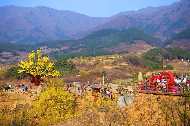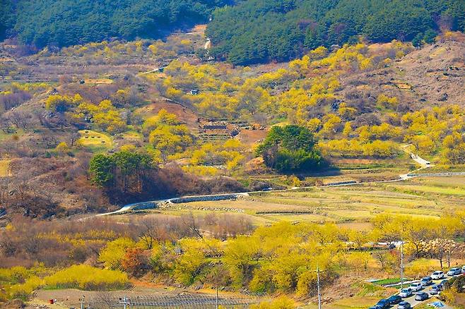 특히 언덕 위에 조성된 사랑공원에서는 마을 전체를 내려다보며, 수놓은 듯 펼쳐진 산수유꽃 풍경을 감상할 수 있어 인생샷 명소로 손꼽힙니다.