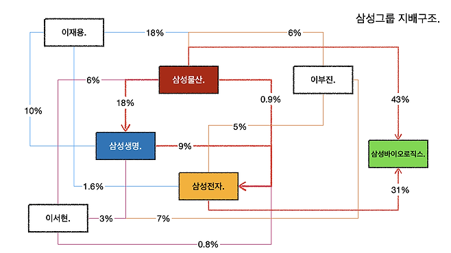- 끝날 때까지 끝난 게 아니라는 말이 나오는 건 이재용-삼성물산-삼성생명-삼성전자의 지배구조가 여전히 취약하기 때문이다. 보험업법 개정안이 통과되면 당장이라도 삼성생명-삼성전자의 연결고리가 끊기고 경영권이 크게 위축된다. 금융-산업 분리도 한국 경제의 오래된 과제다.
