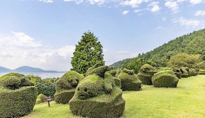 남해 토피아랜드는 동화 속 세계를 떠올리게 하는 독특한 정원이다. 식물을 다듬어 다양한 형태의 조형물을 만드는 토피어리 작품들이 공원 곳곳에 자리하고 있어 마치 동화 속 풍경을 거니는 듯한 분위기를 느낄 수 있다. 울창한 편백나무 숲과 푸른 바다가 어우러진 풍경 덕분에 남해를 찾는 여행객들에게 색다른 산책 장소로 알려져 있다.