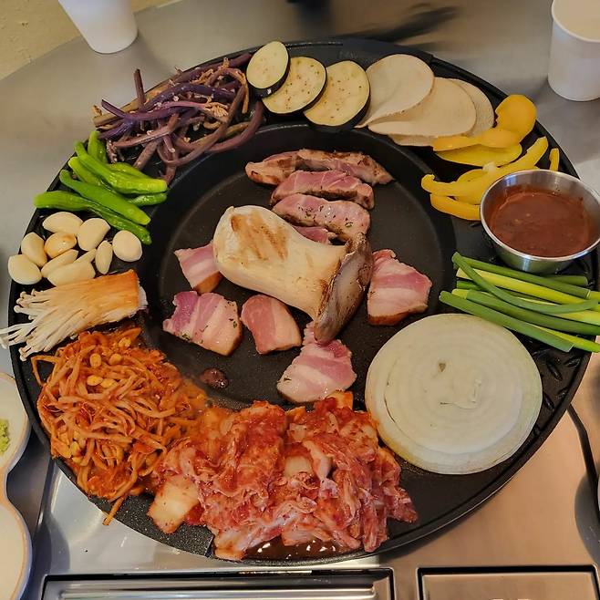 특별한 전통 숙성 비법으로 168시간 숙성해 고기의 육즙과 풍미를 더 끌어 올렸다는 기장 '난로회담'. 조선시대 성행하던 '난로회'라는 양반들의 고기 모임을 토대로 현대식으로 재구성한 곳이다. 대표 메뉴는 전립 한판으로 신선한 쌈 채소와 꽈리고추, 김치, 고사리 등 여러 종류의 구움 채소, 부드러운 숙성 흑돼지 고기가 한 판에 나오는데 정갈하고 깔끔해 비주얼부터 보기 좋다. 고기를 다 먹은 후 고기를 먹은 판에 직접 끓여 먹는 된장찌개도 별미라니 마무리로 된장찌개를 추천한다.