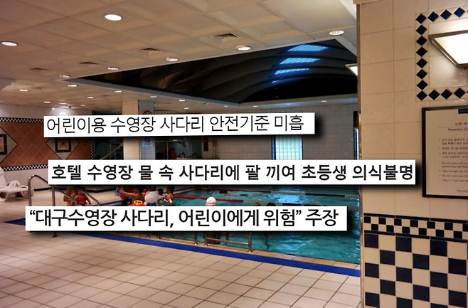 더구나 철제 사다리 같은 경우, 표면이 미끄럽고 공간이 협소해 어린이들의 팔이나 다리가 끼이는 사고가 발생할 가능성이 높습니다. 실제로 지난해 한 특급호텔의 유아 풀장에서 철제 사다리에 팔이 끼어 사망에 이르는 안타까운 사고가 발생한 사례도 있었습니다. 이러한 사고는 안전 관리 미비와 시설물 설계 상의 문제에서 비롯된 것으로, 수영장을 이용할 때 더욱 신경 써야 할 부분입니다.