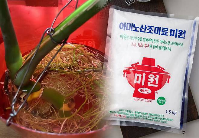 미원은 글루타민산 나트륨이 주성분인데요. 식물 성장의 큰 도움을 줍니다.