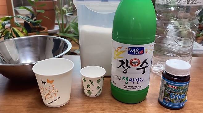쉽게 구할 수 있는 '미원'과 '막걸리'로 집에서 간단하게 천연 비료를 만들 수 있습니다.