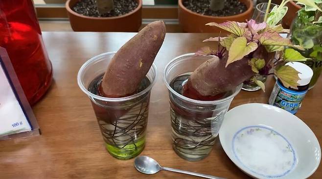 미원을 넣고 고구마를 키우면 뿌리가 빨리 자랄 것이라 기대하고 실험을 해봤는데요.