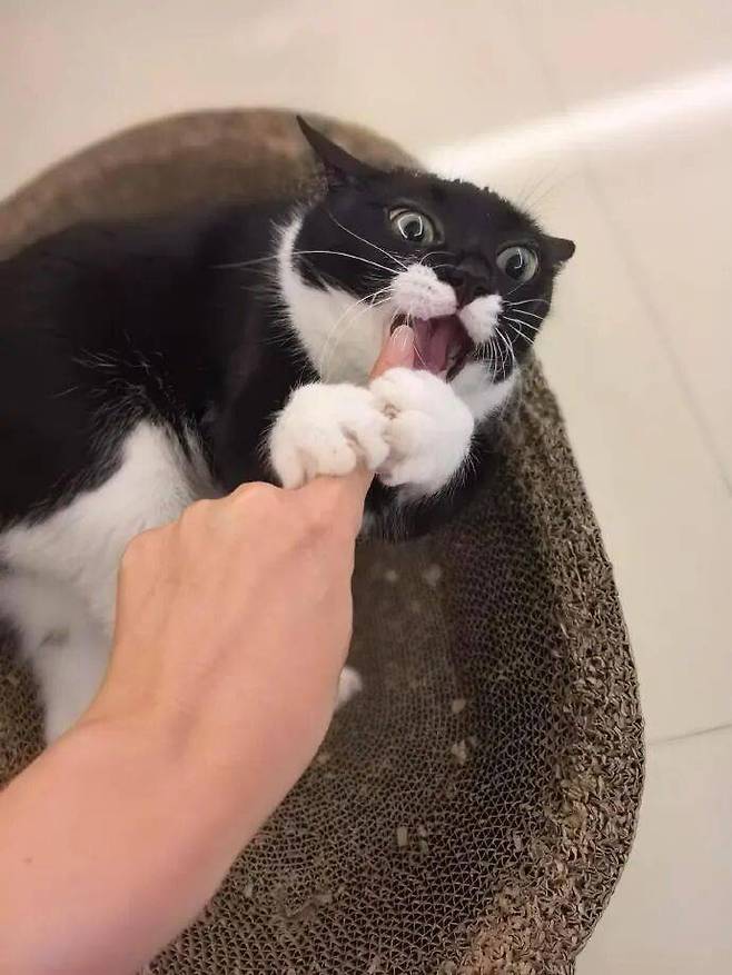 동물 세계에서 상대를 오래 응시하거나 손가락으로 직접 가리키는 행동은 종종 도전이나 위협으로 받아들여집니다. 그래서 사람은 전혀 그런 뜻이 없어도, 고양이 입장에선 “이 큰 존재가 날 빤히 쳐다보며 뭔가를 내밀고 있네. 위험할지도 몰라!”라고 느낄 수 있죠. 겁이 많거나 예민한 고양이라면 당연히 자신을 지키기 위해 깨물거나 긁는 행동을 할 수 있습니다.