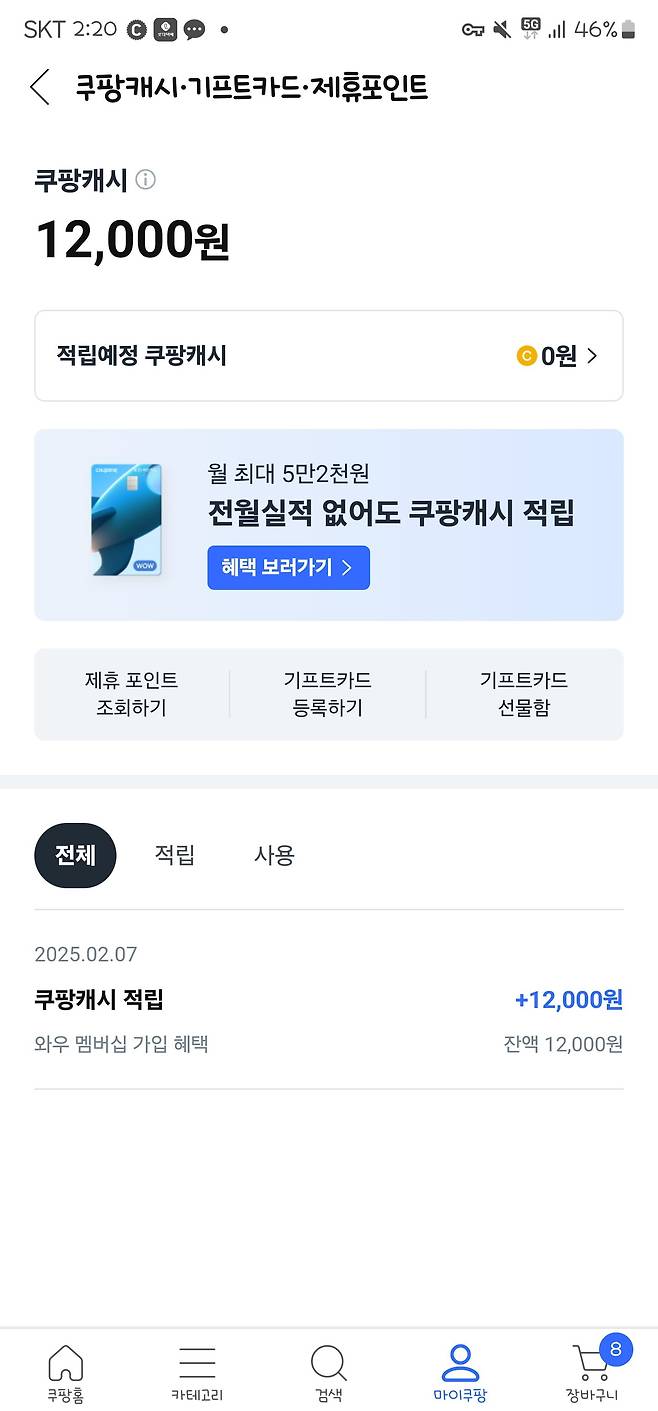 프레시 시킬게 있어서 와우 가입을 할까하다, 쿠폰 결제 후 와우 가입 캐시 지급이벤트 기억이 나서 일단 아무상품이나 결제 진행하니, 팝업떠서 와우 가입했습니다.