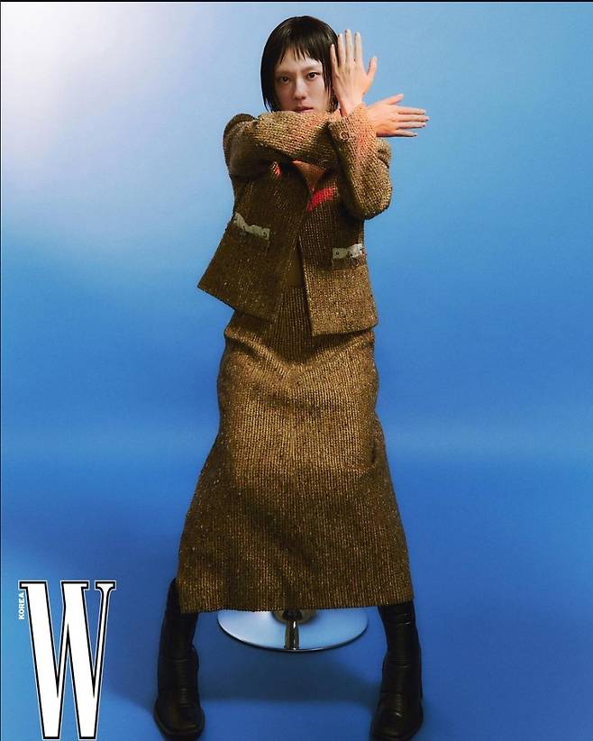 또, 김예지는 골드 스팽글 재킷과 롱스커트를 셋업으로 걸쳐 화려하고 멋스러운 패션을 선보였습니다.