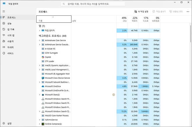참고로 작업 관리자에서도 백그라운드 프로세스의 개수와 CPU, GPU, 메모리 사용률을 확인할 수 있지만, 배터리 소모를 기준으로 앱을 관리하려면 ‘배터리 사용량’ 메뉴가 훨씬 더 유용하다. 특히 정확한 사용 패턴을 파악하려면, 하루 정도는 전원에 연결하지 않고 평소처럼 노트북을 사용한 뒤 이 메뉴를 통해 어떤 백그라운드 앱이 전력을 많이 소모했는지 꼼꼼히 확인하는 것이 좋다. 이 과정을 거치면 살생부(?)가 딱 정해질 것이다. 어떤 앱을 우선 종료할까?