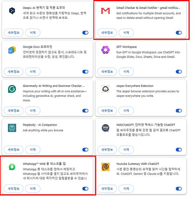 Edge, Chrome, Whale 등 웹브라우저의 확장 프로그램도 전력을 꾸준히 소모한다. "브라우저를 닫으면 끝 아닌가?"라고 생각할 수 있지만, 일부 확장 프로그램은 브라우저를 종료해도 백그라운드에서 계속 작동한다. 주로 알림 기능을 제공하는 확장 프로그램이 이에 해당하며, WhatsApp 메신저, Gmail Checker 등이 대표적이다. 이들은 브라우저가 꺼져 있어도 변동 사항을 감지해 알림 팝업을 띄우기 때문에 배터리 소모를 유발한다. 따라서 배터리 사용이 중요한 상황이라면 각 브라우저의 설정에서 “브라우저 닫을 때 백그라운드 앱 실행 중지” 옵션을 활성화하는 것이 좋다.