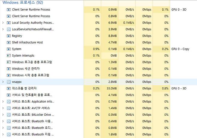 또한 Windows 운영에 필요한 "Windows 프로세스" 역시 절대 손대지 말아야 한다. 배터리 사용량 메뉴나 작업 관리자에서도 이들은 일반 앱과 백그라운드 항목이 아닌 별도의 리스트로 분류될 정도로 중요한 요소다. 다른 백그라운드 작업을 끈다고 해서 이 필수 서비스까지 건드리는 일은 없어야 하며, 애초에 손대지 않는 것이 최선이다.