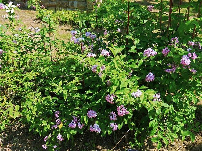 이곳에서 5월과 6월 사이 눈여겨봐야 할 식물이 두 가지 있다. 하나는 수국과 낙엽활엽관목에 속하는 꽃말발도리 ‘몽 로즈’, 다른 하나는 장미과 식물인 ‘갈기조팝나무’다.