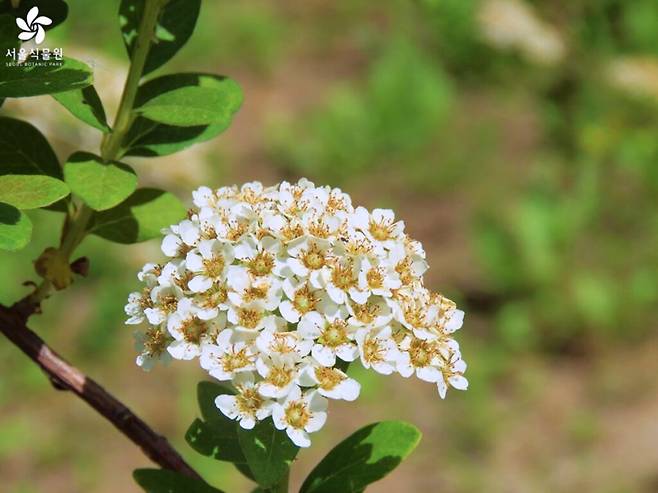 갈기조팝나무는 우리나라 평안남북도에서 강원, 충북, 경북에 이르기까지 널리 분포하는 식물로, 5~6월 사이 눈처럼 하얀 꽃을 뭉게구름처럼 피워낸다.