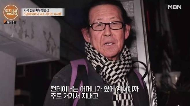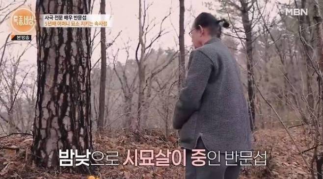 그는 “원래 어머니는 화장 후 후손들에게 부담이 되지 않게 뿌려 달라고 하셨다. 그런데 제 마음에 그게 와닿지 않았고, 그냥 떠나보내고 싶지 않았다. 그래서 자주 찾아뵐 수 있도록 제가 머무는 근처의 오래되고 좋은 소나무 아래에 수목장 비슷하게 모셨다”고 설명했다. 이후 반문섭은 어머니 곁에서 살기 위해 작은 컨테이너를 마련해 묘소를 지키며 생활하고 있었다.