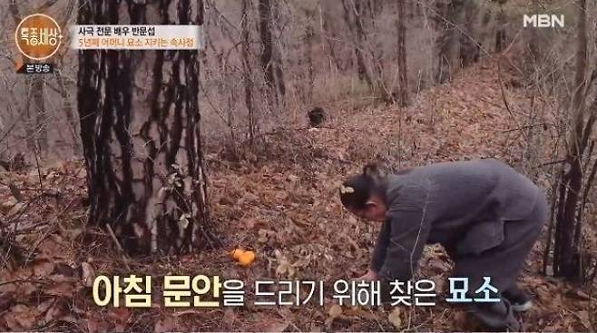 사실 이 컨테이너 집에는 특별한 사연이 담겨 있었다. 약초를 정리하던 그는 갑자기 냉장고에서 막걸리 한 병을 꺼내더니, 길조차 없는 산속으로 익숙한 듯 발걸음을 옮겼다. 그리고 한 그루 소나무 앞에 서서 “어머니, 저 왔습니다”라며 인사를 올렸다. 5년 전 세상을 떠난 어머니의 유골을 이 소나무 아래 모셔둔 것이다.