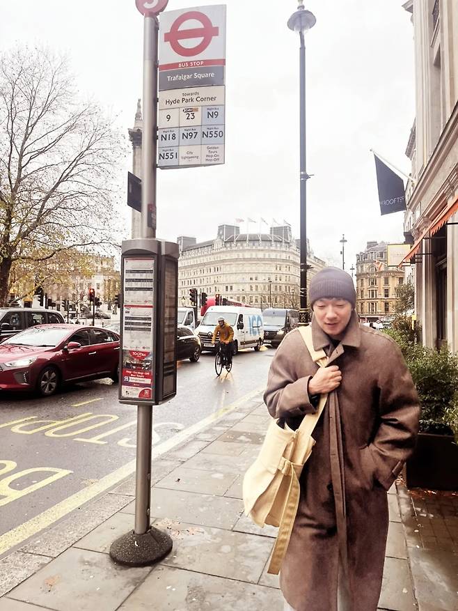 런던 트라팔가 광장 근처 버스정류장 앞, 손석구의 인스타그램 한 장이 이목을 집중시켰다. 흐린 하늘과 젖은 도로 위로 스산한 겨울 공기가 감돌지만, 그의 오버사이즈 코트가 풍기는 묵직한 존재감은 그 자체로 도시의 배경과 어우러지며 영화 같은 장면을 만들어낸다. 브라운빛 코트와 아이보리 톤의 캔버스백이 대비를 이루며 손석구 특유의 무심한 듯 감각적인 스타일링이 드러난다.