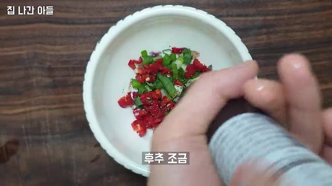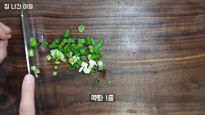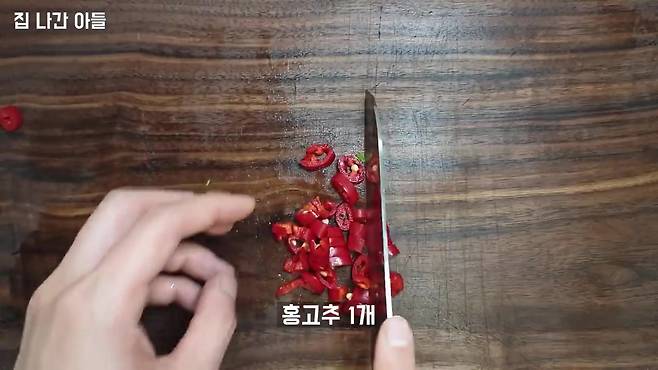2. 부재료 손질 홍고추와 쪽파는 잘게 썰어 준비합니다. 매운맛이 싫다면 홍고추는 생략해도 무방합니다.