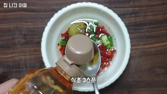 간장 3스푼과 식초 3스푼을 넣어 조물조물 무쳐줍니다.