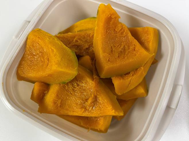 냉동 단호박 손질된 것도 요즘은 잘 나오지만, 이렇게 직접 하니 가성비도 좋고 맛도 더 좋습니다. 단호박은 살짝 익혀 냉장보관할 경우 보관기간도 5일 정도로 깁니다.