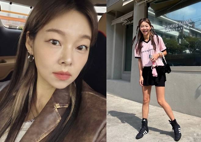 모델 겸 방송인 송해나가 SNS를 통해 블록코어룩을 선보였습니다!