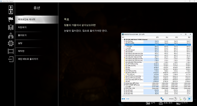 네종류의 게임을 각각 10여분간 플레이하면서 온도테스트를 진행하였습니다.