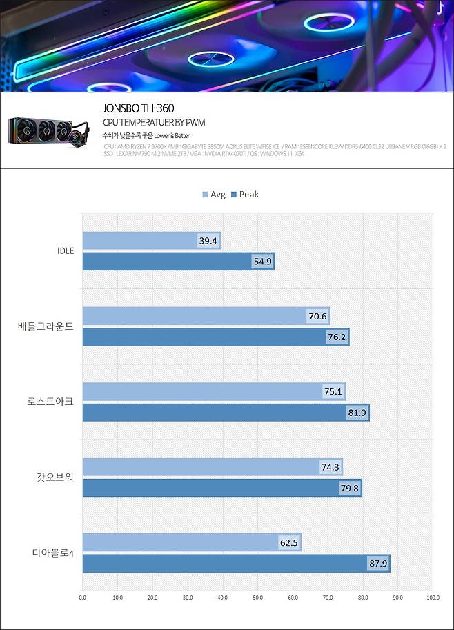 특히, 9만원대의 출시가는 동급 제품 대비 뛰어난 가성비를 자랑하는데요 이 가격대에서 성능과 디자인을 모두 갖춘 3열 수랭쿨러 제품은 흔치 않으며, 가성비를 중시하는 사용자들에게 매력적인 포인트가 될것 같습니다.