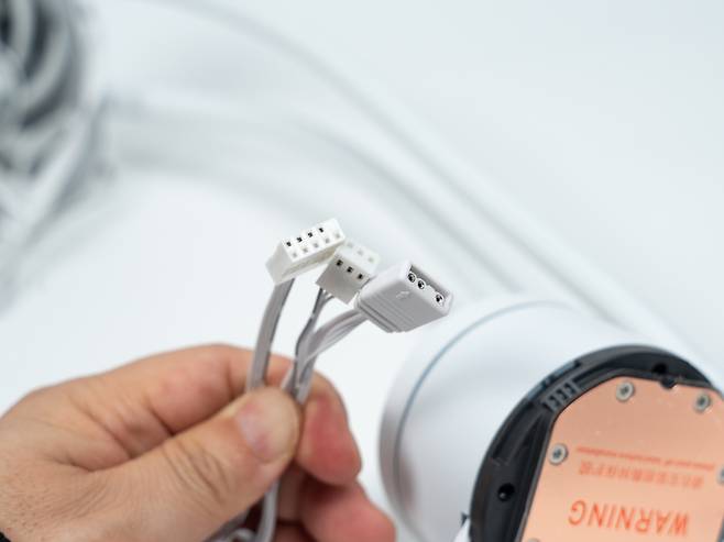 케이블은 전원, ARGB, USB 단자로 구성되어 있으며 USB 단자를 통해 온도 표시 기능을 활성화할 수 있습니다.