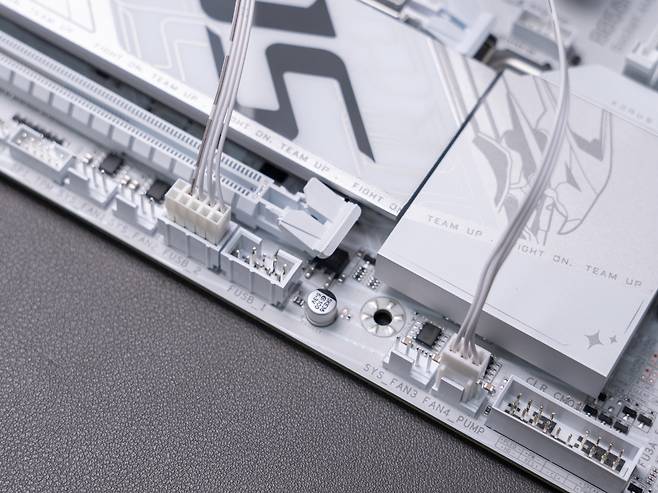 JONSBO TH-360은 유니바디 디자인이 적용되어 조립과 선정리가 상당히 편리합니다. 펌프와 쿨링팬의 케이블을 메인보드에 연결해주는데요 이때 USB 케이블은 꼭 메인보드 내부 USB포트에 연결해주셔야 디스플레이에 온도를 표시할 수 있습니다.