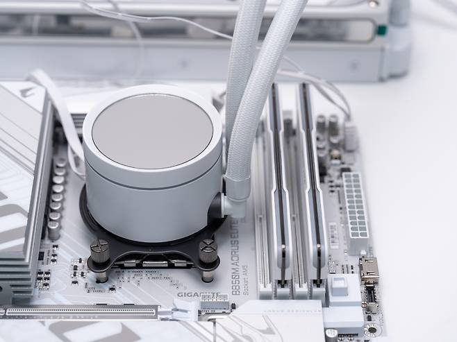 튜브가 CPU 오른쪽에 위치하더라도 램 간섭이 없도록 설계되어 있어 조립이 한결 수월합니다. 다양한 크기와 높이를 가진 튜닝램을 장착할 수 있으며, 좁은 공간에서도 안정적으로 설치할 수 있습니다.