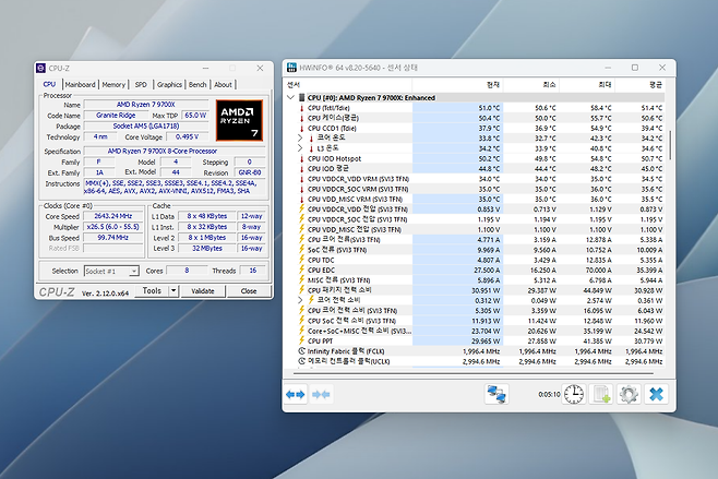 발열관리가 힘든 AMD 9700X 에서 80도 미만으로 유지되는것을 확인할 수 있습니다.