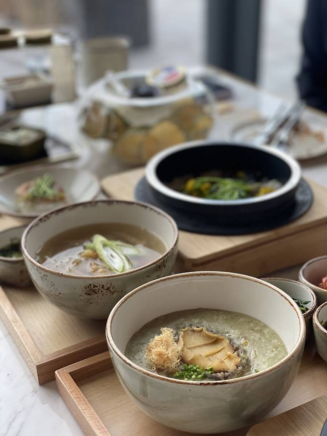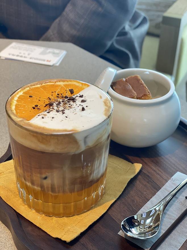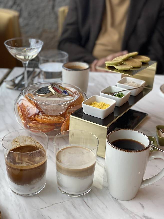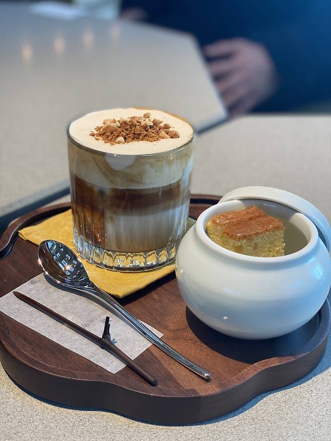 김희중 총주방장은 “주상절리에서 영감을 받아 만든 결이 많은 크로와상이 대표 빵이다. 여기에 트러플 버터, 제주 말차와 시트러스 제스트를 섞어만든 버터를 함께 낸다”고 소개했다. 제주에 있는 로스터리 업체를 직접 다니면서 개발한 커피도 맛있다. 특히 찐라떼가 인상적이다. 아침에 마셔도 부담스럽지 않게 뜨겁지도 차갑지도 않은 온도의 커피다. 부드럽고 단맛을 가미한 특별한 우유를 넣어 더 맛있다.