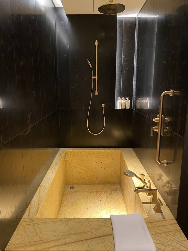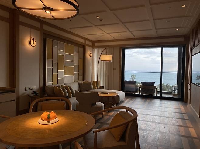 기본 객실인 디럭스룸의 평균 면적 45㎡다. 객실마다 바다를 바라볼 수 있는 야외 테라스와 어른 2명이 함께 들어가도 넉넉한 대리석 욕조를 설치했다. 방에 비치된 욕실 어메니티는 전부 커다란 크기다. 한번 쓰고 버리는 비누와 칫솔 치약도 일부러 뺐다.