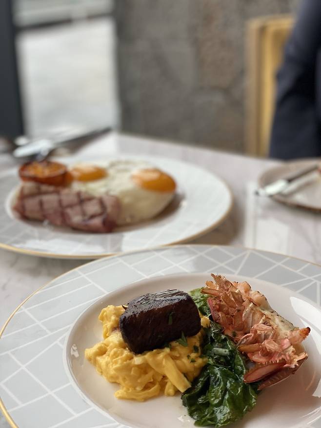 식음업장은 총 6곳이다. 가장 대표적인 건 ‘아일랜드 키친’이다. 이곳에서는 오전 7시부터 오후 2시 30분까지 조식을 먹을 수 있다. 아침 시간을 여유롭게 보낼 수 있도록 이용 시간을 길게 잡았다. 해서 조식이 아니라 ‘브런치’라는 단어를 사용한다. 실내 148석, 실외 52석 총 200석을 배치했다.