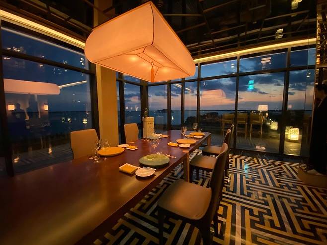 로비 공간 한쪽면은 통유리창이다. 너른 로비 한가운데 실제 나무도 심어놨다. 제주를 대표하는 감귤나무다. 로비가 있는 공간이 8층이다. 이곳에서 시작해 한층한층 아래로 호텔 공간이 펼쳐진다.