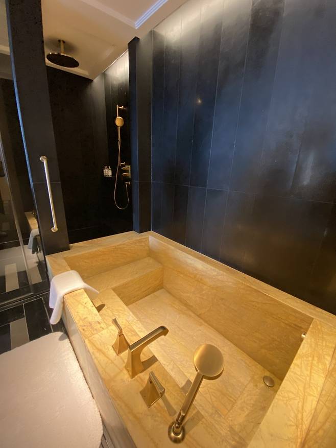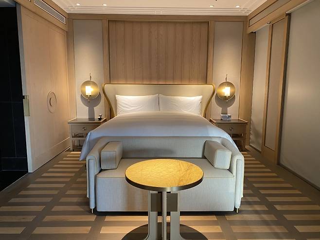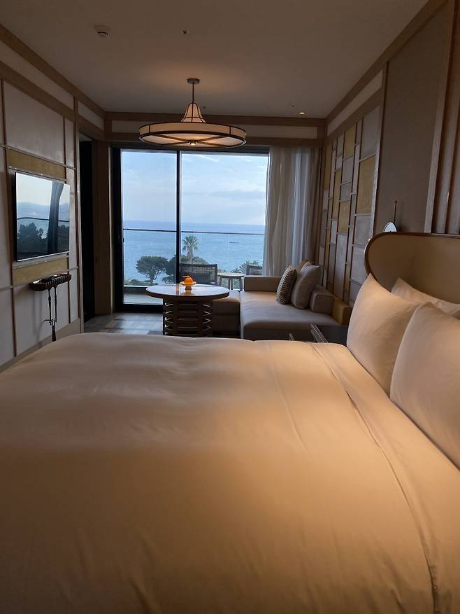기본 객실인 디럭스룸의 평균 면적 45㎡다. 객실마다 바다를 바라볼 수 있는 야외 테라스와 어른 2명이 함께 들어가도 넉넉한 대리석 욕조를 설치했다. 방에 비치된 욕실 어메니티는 전부 커다란 크기다. 한번 쓰고 버리는 비누와 칫솔 치약도 일부러 뺐다.