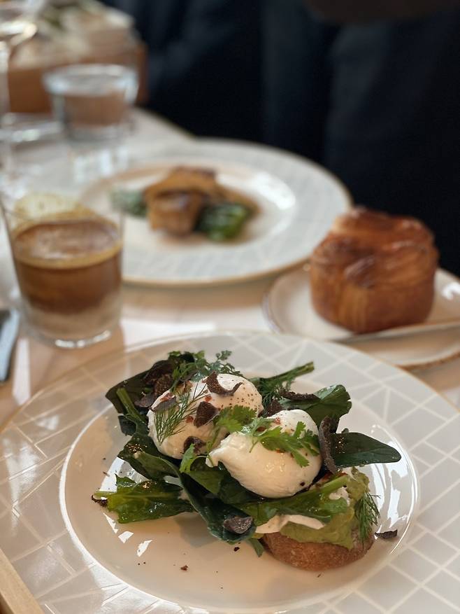 김희중 총주방장은 “주상절리에서 영감을 받아 만든 결이 많은 크로와상이 대표 빵이다. 여기에 트러플 버터, 제주 말차와 시트러스 제스트를 섞어만든 버터를 함께 낸다”고 소개했다. 제주에 있는 로스터리 업체를 직접 다니면서 개발한 커피도 맛있다. 특히 찐라떼가 인상적이다. 아침에 마셔도 부담스럽지 않게 뜨겁지도 차갑지도 않은 온도의 커피다. 부드럽고 단맛을 가미한 특별한 우유를 넣어 더 맛있다.