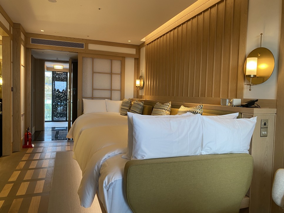 객실은 총 197개로 디럭스와 프리미엄, 스위트로 구분된다. 모든 객실은 어른 최대 3명이 묵을 수 있다. 스위트룸은 총 28개로 면적은 약 92㎡다. 파노라마 스위트, 패밀리 스위트 with 스파, 패밀리 스위트, 프리미엄 스위트 with 스파, 프리미엄 스위트로 구성된다. ‘With 스파’가 붙은 객실에는 넓은 테라스 공간에 원형 히노키 욕조가 구비되어 있다.