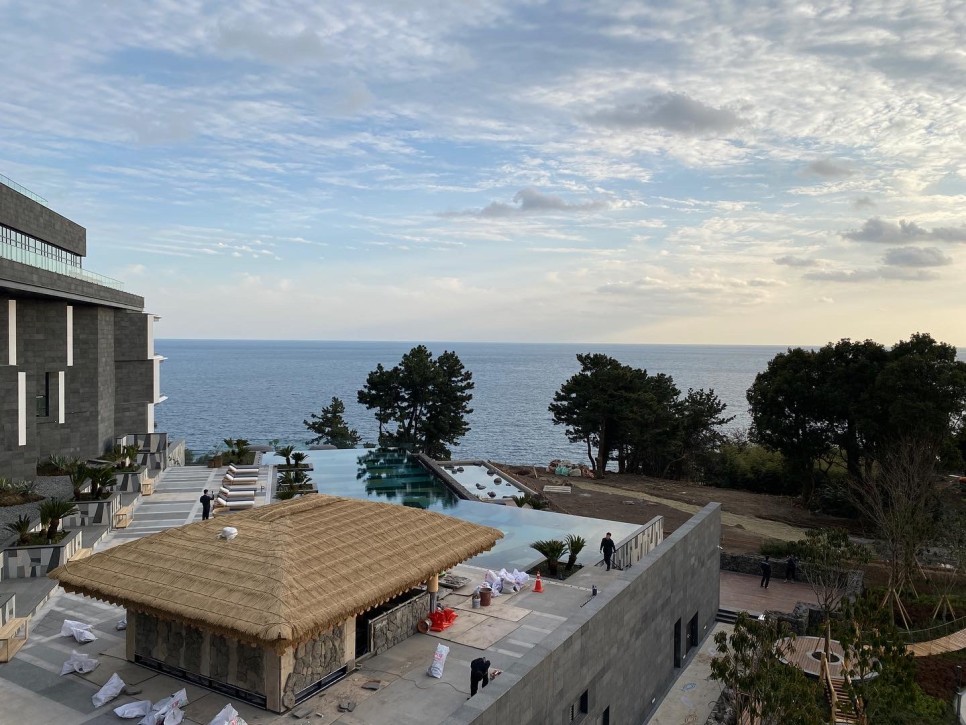 JW 메리어트 제주 리조트는 2016년 공사를 시작했다. 주상절리로 이어지는 비탈면을 그대로 살려 호텔이 8층에서 시작해 부대시설과 객실이 로비 아래 위치한다.