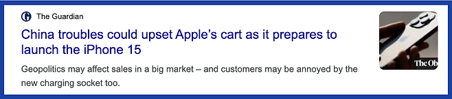 아래 기사는 애플이라는 기업의 이름이 이 표현에도 나온다는 점을 언어 유희로 활용했어.