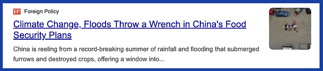 위 기사는 농업을 진흥해 자국 내 식량 자급률을 높이겠다는 중국의 식량 안보 계획을 다루고 있어. 기후가 변화하고 큰 홍수가 나면 당연히 한 해 농사가 망가지고 말겠지? 그래서 throw a wrench라는 표현이 사용된 거야.
