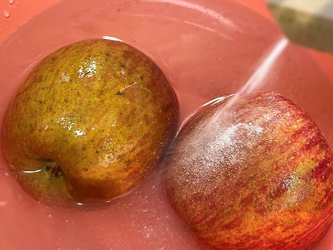 사과를 그동안 흐르는 물에만 대충 세척했다면 잘못하신 겁니다. 사과 표면에는 농약, 왁스, 먼지 등이 남아 있을 수 있기 때문에 단순히 물로만 헹구는 것은 충분치 않습니다.