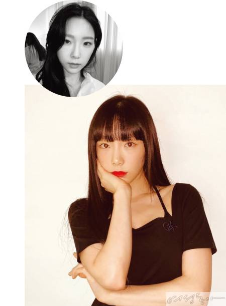 네임 블랙 컬러로 염색해 화제가 됐던 태연이 이번에는 '소프트 풀 뱅’ 스타일로 앞머리를 잘랐다. 태연의 헤어를 담당한 위위아틀리에 꽃비 실장은 "앞머리의 양과 길이를 정한 뒤 원하는 디자인보다 조금 길게 자른다. 일자 느낌으로 블런트하게 커트하는 것이 포인트다. 앞머리 양옆의 모량이 많아지지 않게 양 조절을 하는 것도 중요하다"고 설명했다. 스타일링할 때도 헤어롤로 앞머리를 너무 동그랗게 연출하면 촌스러워 보이니 가볍게 C컬 드라이를 해 내추럴하게 연출한다.