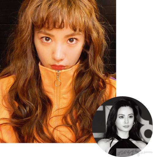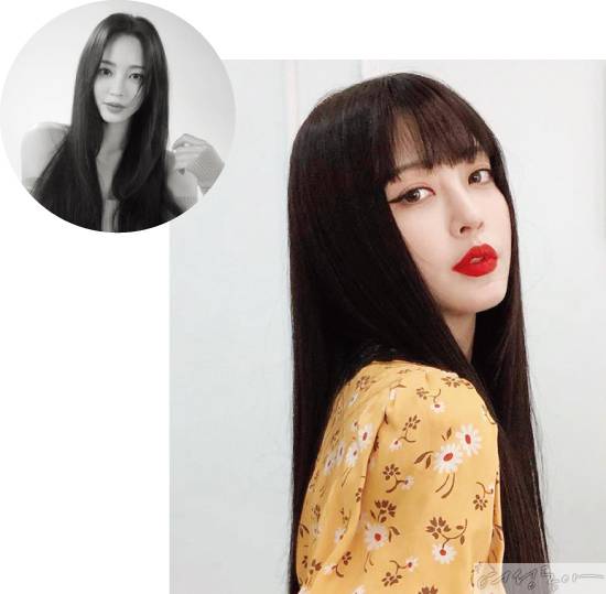 다양한 파격적인 헤어스타일로 매번 화제를 모으는 한예슬. 그녀가 이번에는 길게 연출한 스트레이트 헤어와 상반되게 앞머리는 눈썹을 덮는 '블런트 뱅’ 스타일로 자르면서 온라인을 뜨겁게 달궜다. 이마가 보이지 않을 정도로 숱을 많이 내고 앞머리를 뭉툭하게 툭 일자로 잘라낸 블런트 뱅은 얼굴이 작아 보이는 효과가 있다. 단, 앞머리 숱을 무겁게 내린 만큼, 이마가 좁다면 답답해 보이니 피하는 것이 좋다.