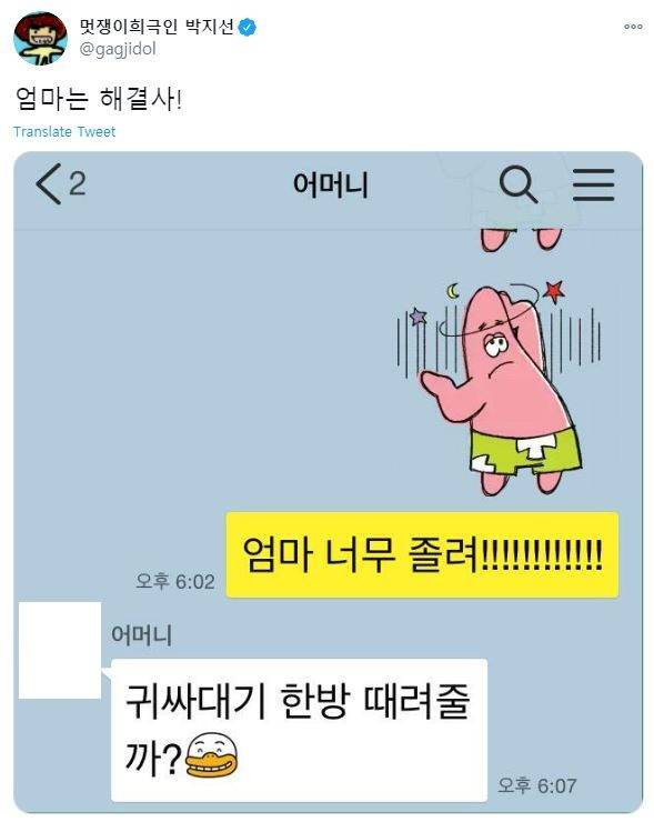 그러면 박지선 씨가 “엄마는 해결사!”라는 트윗을 통해 누리꾼들에게 웃음을 주는 식이다.