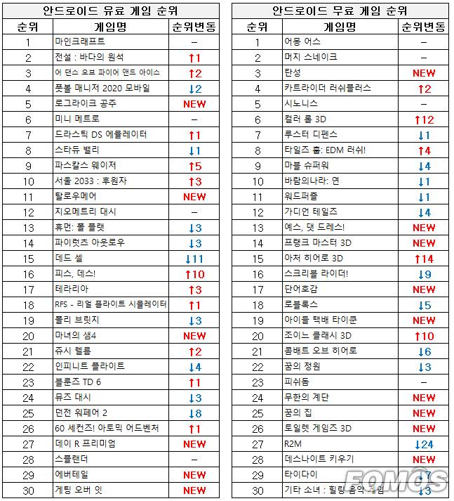 안드로이드 무료 게임 순위에서는 '어몽 어스'에 이어 '머지 스네이크'와 같이 주로 간단히 즐길 수 있는 캐주얼 게임들이 인기를 보였다.