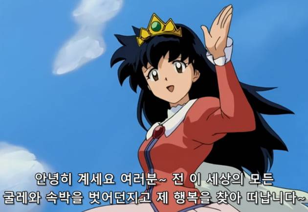 안녕히 계세요 여러분~ 전 이 세상의 모든 굴레와 속박을 벗어던지고 제 행복을 찾아 떠납니다~