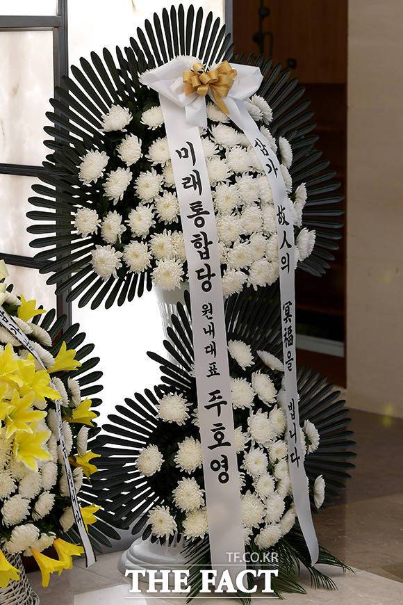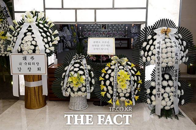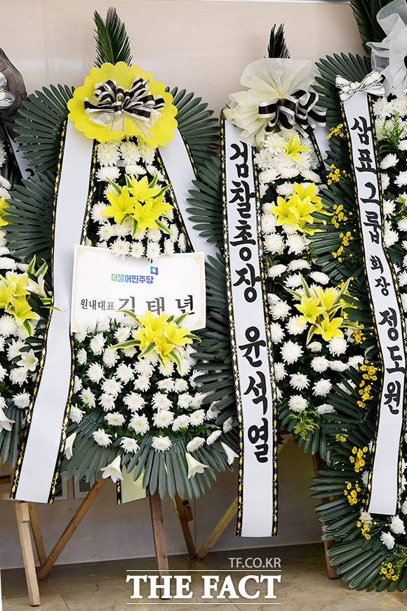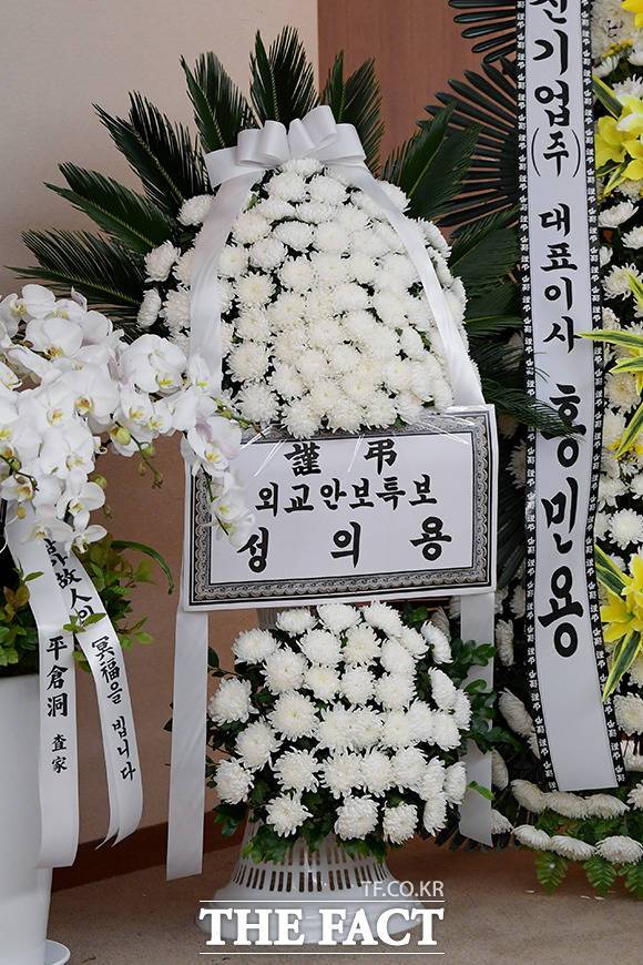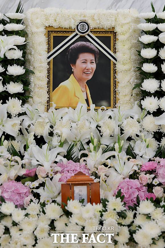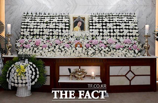 [더팩트|이선화 기자] 박근혜 전 대통령의 이복언니인 고 박재옥 씨가 별세한 가운데 9일 오전 서울 서대문구 신촌세브란스병원 장례식장에 마련된 빈소에 고인의 영정이 놓여있다.
