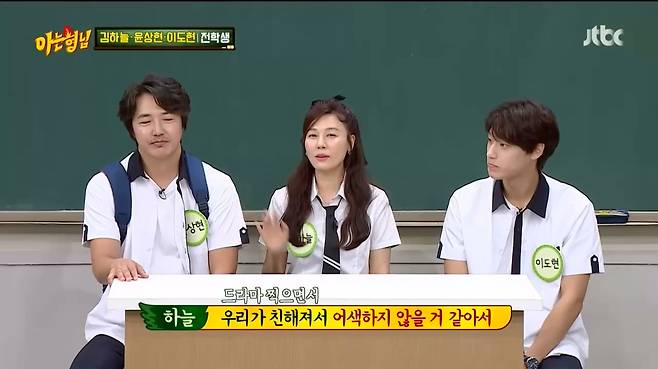 이날 윤상현과 이도현은 "김하늘이 먼저 '아는 형님'에 출연하자고 제안했다"라고 밝혀 모두를 놀라게 했다. 오랜만에 예능에 출연한 김하늘은 "혼자라면 엄두도 못 냈을텐데 많이 친해져서 함께 나올 수 있었다"고 밝혔다.