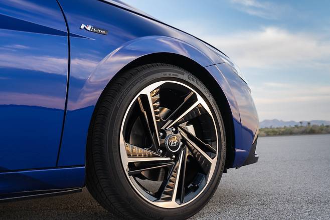 전체적으로 파라메트릭 다이내믹스 테마를 적용한 북미형 엘란트라 N라인의 전면부 캐스케이드 그릴엔 N라인 배지가 부착된 모습이다. 또한 전면 공기 흡입구 주변이 새로워졌을 뿐만 아니라, 공기역학적 성능과 엔진 냉각을 지원한다는 것도 특징이다.